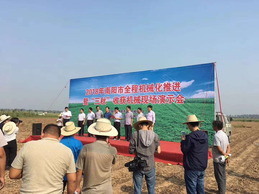 碩果累累的八月,滿(mǎn)載著收獲幸福的喜悅。由南陽(yáng)市農(nóng)業(yè)機(jī)械化協(xié)會(huì)主辦、臥龍區(qū)農(nóng)業(yè)機(jī)械化管理局承辦的2018年南陽(yáng)市全程機(jī)械化推進(jìn)暨“三秋”收獲機(jī)械現(xiàn)場(chǎng)演示會(huì)在南陽(yáng)市臥龍區(qū)潦河鎮(zhèn)吳集村召開(kāi)。