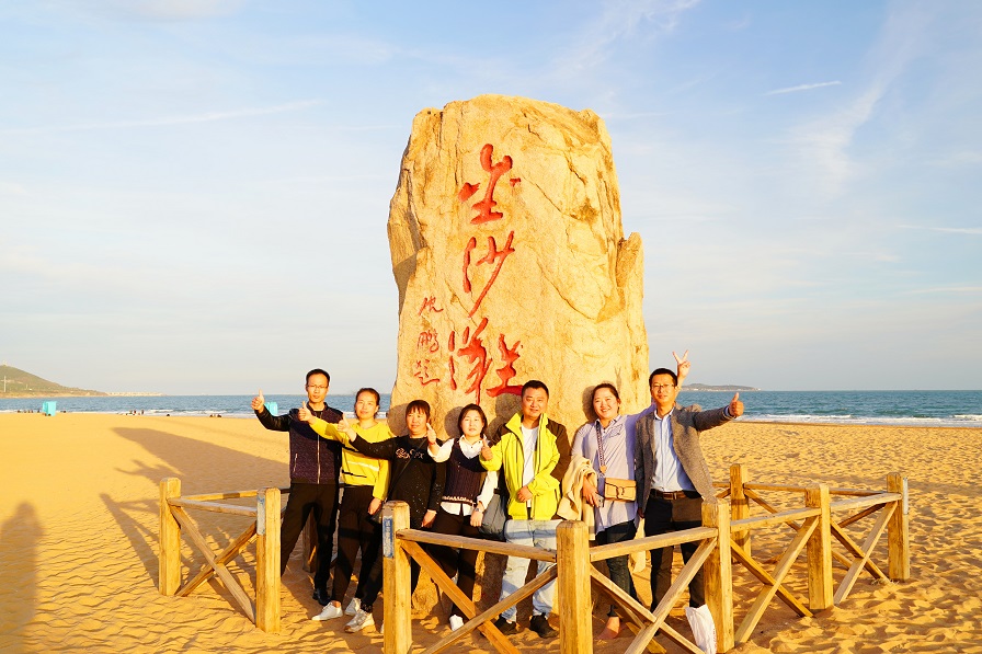 上午的參觀學(xué)習(xí)讓每一個(gè)人都長(zhǎng)了見識(shí),開闊了眼界。下午一行人來到了號(hào)稱“亞洲第一灘”的黃島金沙灘。黃島金沙灘位于黃海之濱,色澤如金,故稱“金沙灘”。是我國(guó)沙質(zhì)最細(xì)、面積最大、風(fēng)景最美的沙灘之一。