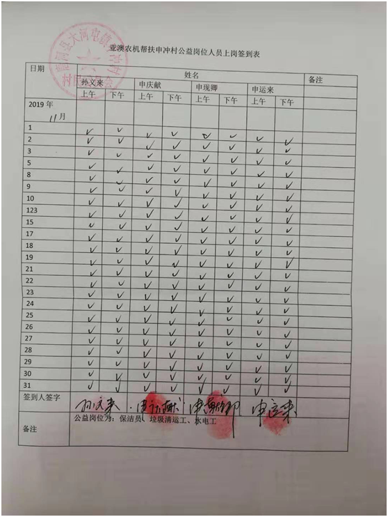 除此之外,我公司聯(lián)合村委會照顧一些特別貧困但有行動能力的老人為村部垃圾清運(yùn)、水電維修、村落清潔等,并為此購買公益崗位,每月定期給這些公益崗位發(fā)放工資500元/個月,以確保他們的正常生活。這一決定從2018年5月至今已經(jīng)實(shí)行了一年半時間,累計發(fā)放公益崗位工資3.1萬元。