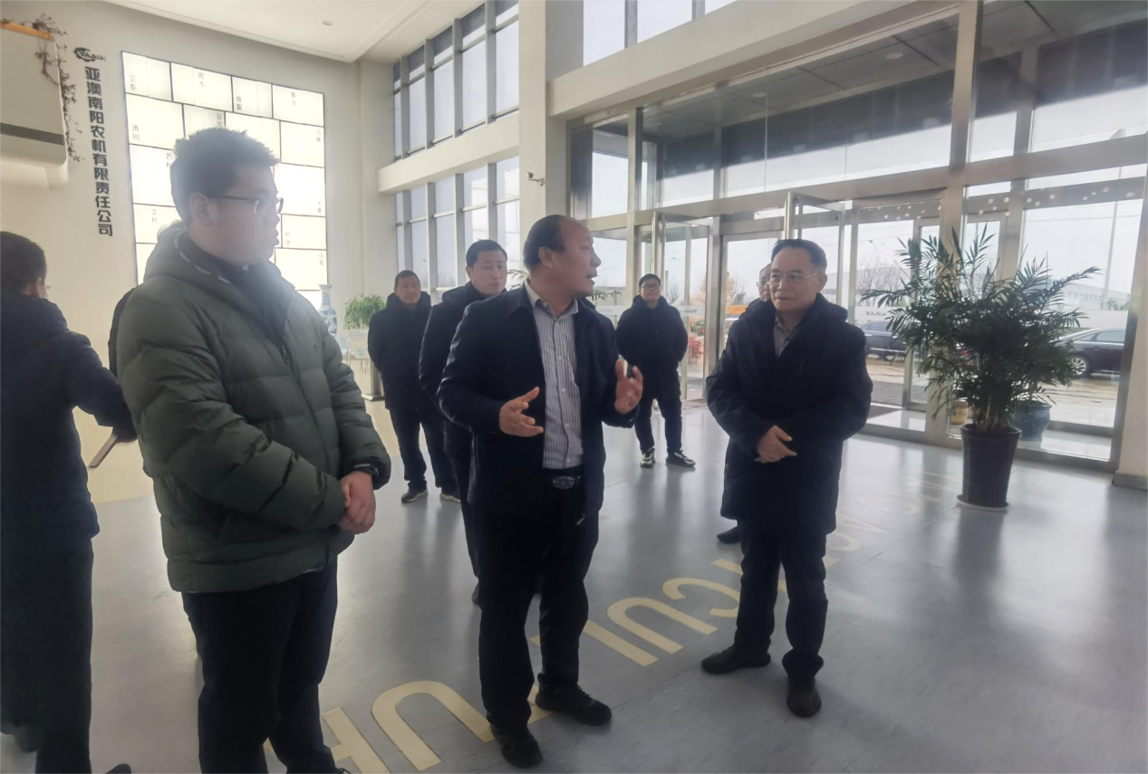 2023年12月15日,國(guó)務(wù)院國(guó)資委三農(nóng)院士專家組副組長(zhǎng)陸永忠院士在唐河縣政府副縣長(zhǎng)方明帶領(lǐng)下來(lái)到亞澳農(nóng)機(jī)走訪調(diào)研,國(guó)電投融晟(廣東)新能源有限公司副總經(jīng)理洪萬(wàn)斌 、國(guó)電投融晟(廣東)新能源有限公司項(xiàng)目總監(jiān)于宏磊等陪同調(diào)研。