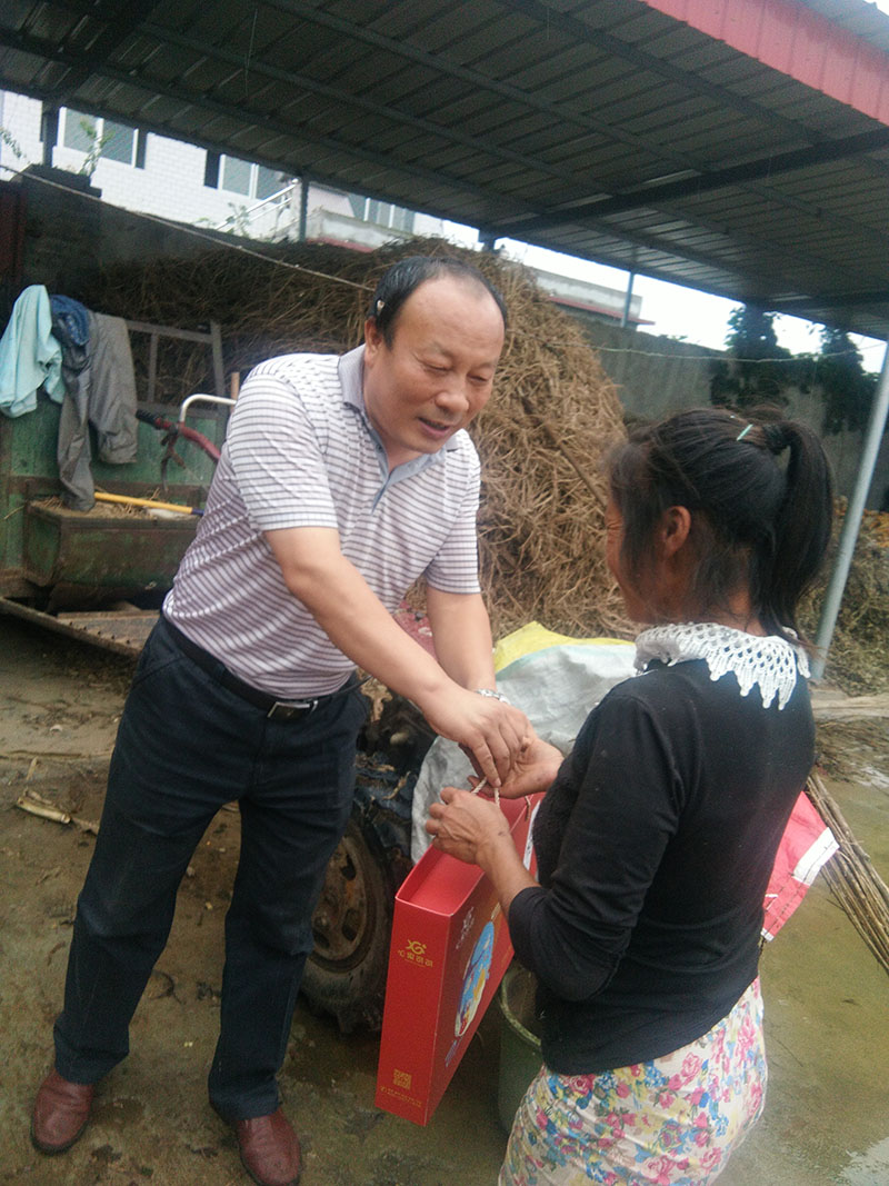 淫雨霏霏,在國慶、中秋雙節(jié)來臨之前,2017年9月25日下午,亞澳南陽農(nóng)機(jī)有限公司總經(jīng)理助理郭靖懷著滿滿的熱情與關(guān)懷,帶著月餅禮盒,再次來到大河屯鎮(zhèn)申沖村開展扶貧慰問工作。