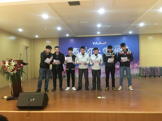 年會初始,總經(jīng)理史炳哲致新年賀詞,并做了2017年年度總結,宣讀了2018年度規(guī)劃。對亞澳全體員工在過去一年中做出的努力和奉獻給予了充分的肯定和贊揚。接著由生產(chǎn)主管王紅衛(wèi)和質(zhì)檢作業(yè)長朱謹超分別為我們作了2017年工作總結及涂裝質(zhì)量問題分析。最后由總經(jīng)辦郭靖特助宣讀了2017年度表彰決定,對優(yōu)秀員工,優(yōu)秀班組、市場開發(fā)先鋒、項目申報、新產(chǎn)品開發(fā)等五個獎項,共15人進行了表彰。