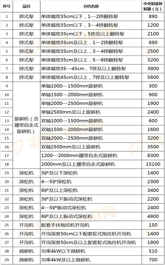 河南省2019年農(nóng)機(jī)補(bǔ)貼額一覽表公示